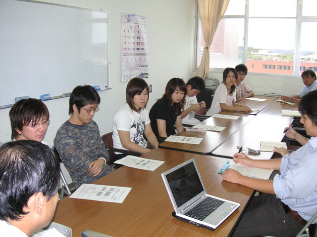 「日本語コミュニケーション」の説明を行う廣瀬助教授。