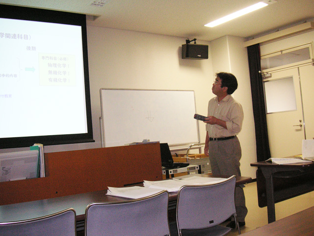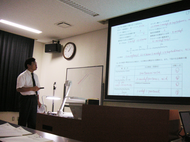 「化学概論」の説明を行う白上助教授。