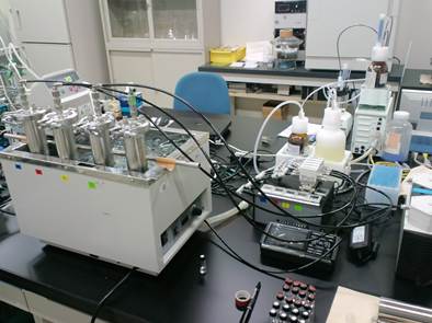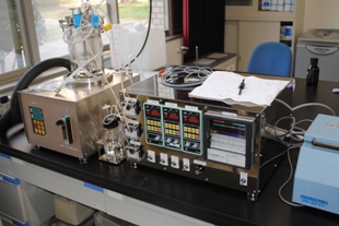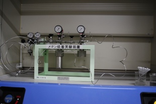 メタン貯蔵材である活性炭を家庭用ボンベとして実用化するために作られた装置です。