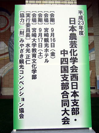 日本農芸化学会西日本支部・中四国支部合同大会が宮崎大学で開催されました。 (2011.9.17)