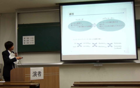 平成23年度日本農芸化学会西日本支部・中四国支部合同大会が宮崎大学木花キャンパスで開催されました。当研究室から一般講演2件エントリーしました。 午前の部 TK君の発表 午後の部 DT君の発表