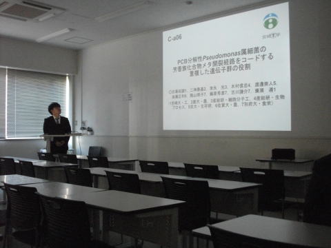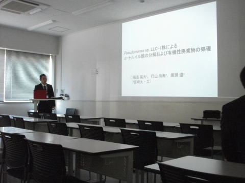 第30回日本生物工学会九州支部宮崎大会が宮崎大学木花キャンパスで開催されました。 (HPはこちら)。 会場は仮移転先の農学部南棟2階の研究室と同じフロアでした。 当研究室から一般講演(口頭発表)2件をエントリーしました。